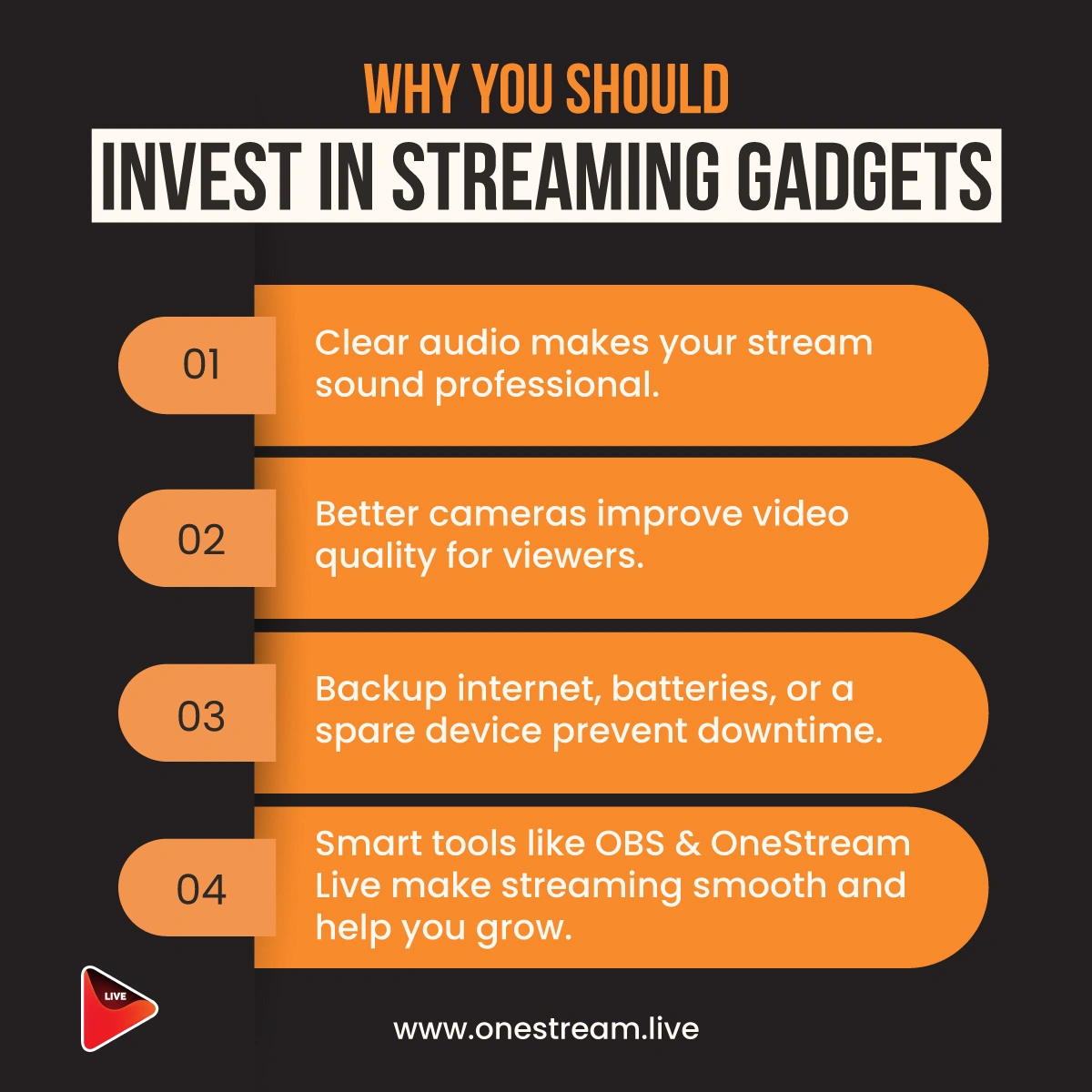 OneStream Live even offers pre-recorded streaming to ensure you never miss an upload, even if you face internet issues. - Smart Tools like OneStream Live Make Streaming Smooth