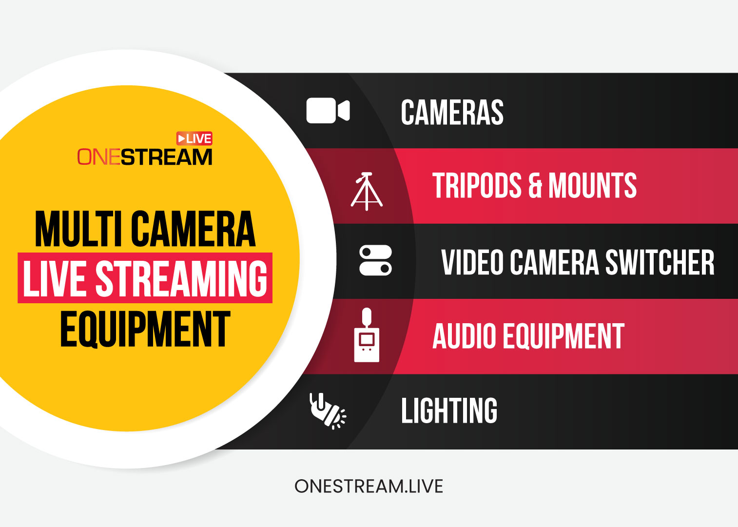 - Video Camera Switcher: A video switcher is essential for managing and switching between multiple cameras during your live stream. OneStream Live Studio has an integrated switcher that makes this process seamless.