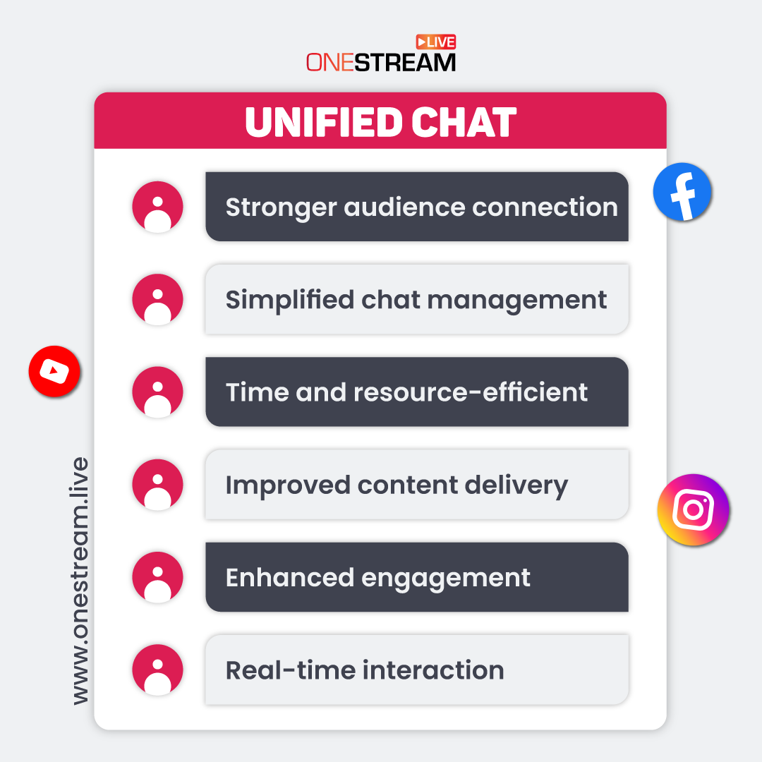 By eliminating the need to switch between platforms, streamers can effortlessly track and respond to their audience’s comments, questions, and reactions in real time via our Unified Chat feature.