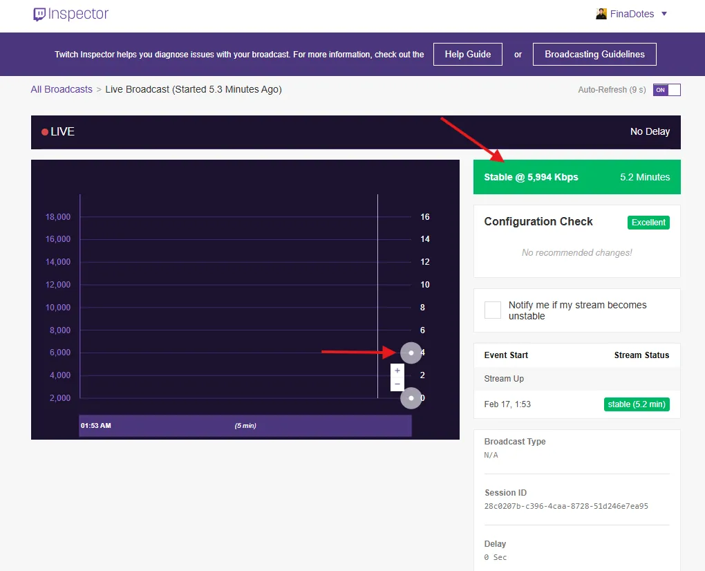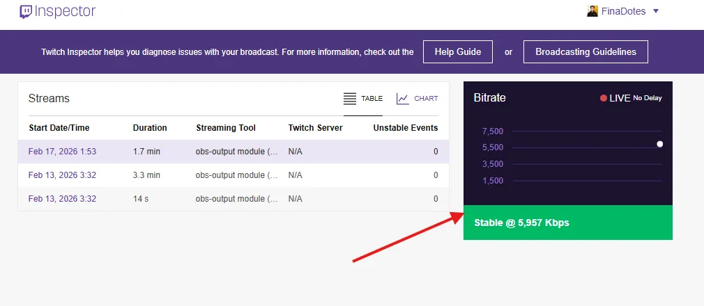 What I noticed: Twitch Inspector showed red warnings, and my stream kept stuttering.