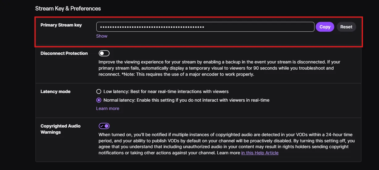 3. Then grab the stream key from here: