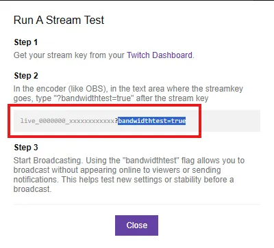 Running Twitch Bandwidth Test