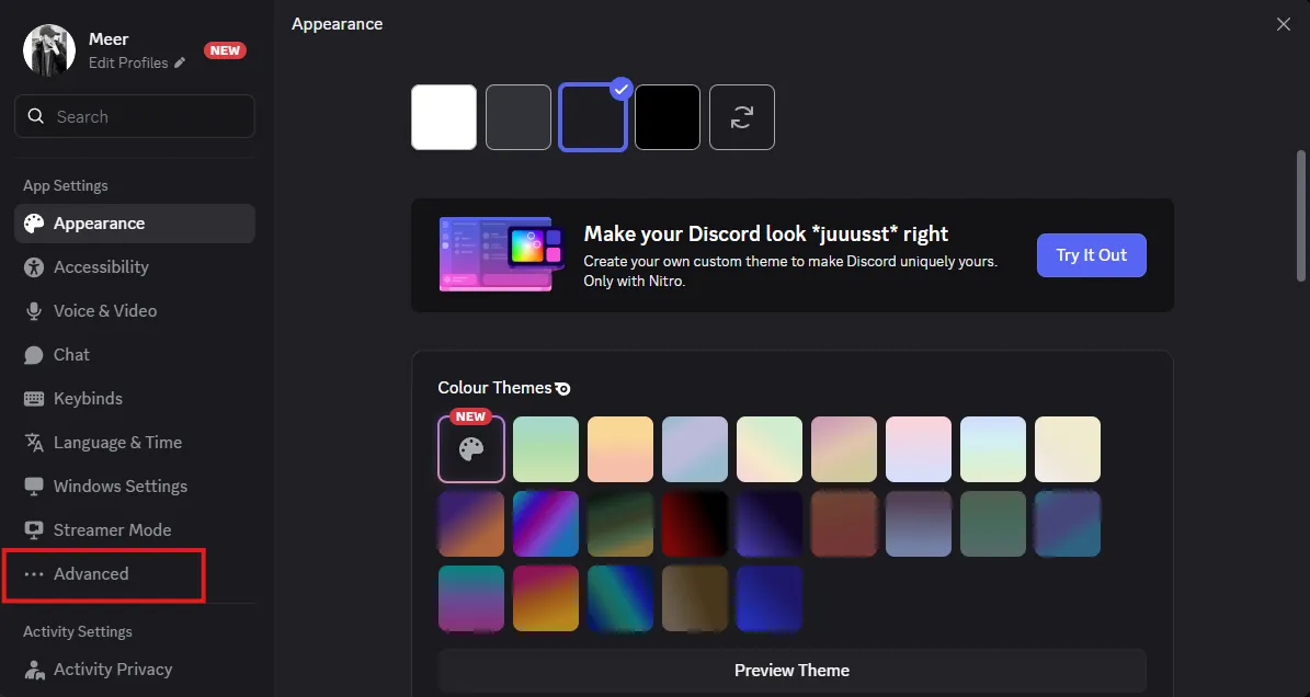 If you click the “settings” button at the bottom right, you’ll get Discord’s preferred settings you can choose from, like this: