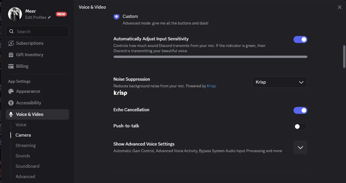 3. Make sure you have “Krisp” selected in the “Noise Suppression” option.