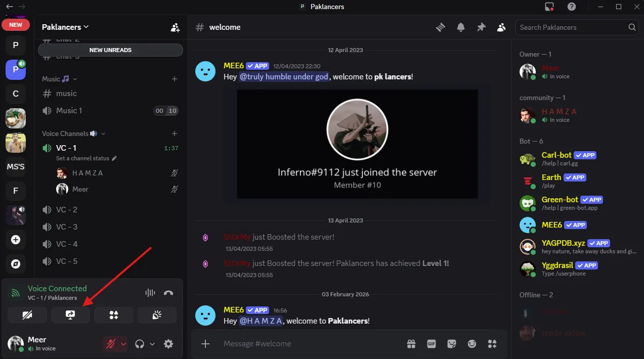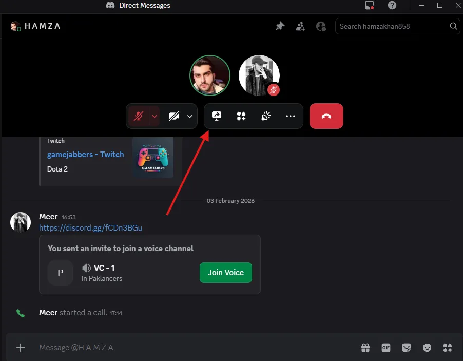 Step 3 – Once you’re in the channel, you will see the Discord screen share option from here: