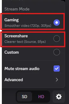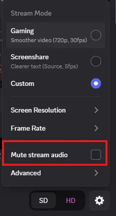 Note: Make sure your stream audio isn’t muted because most people complain about Discord stream no sound, and they have the mute audio option checked here: