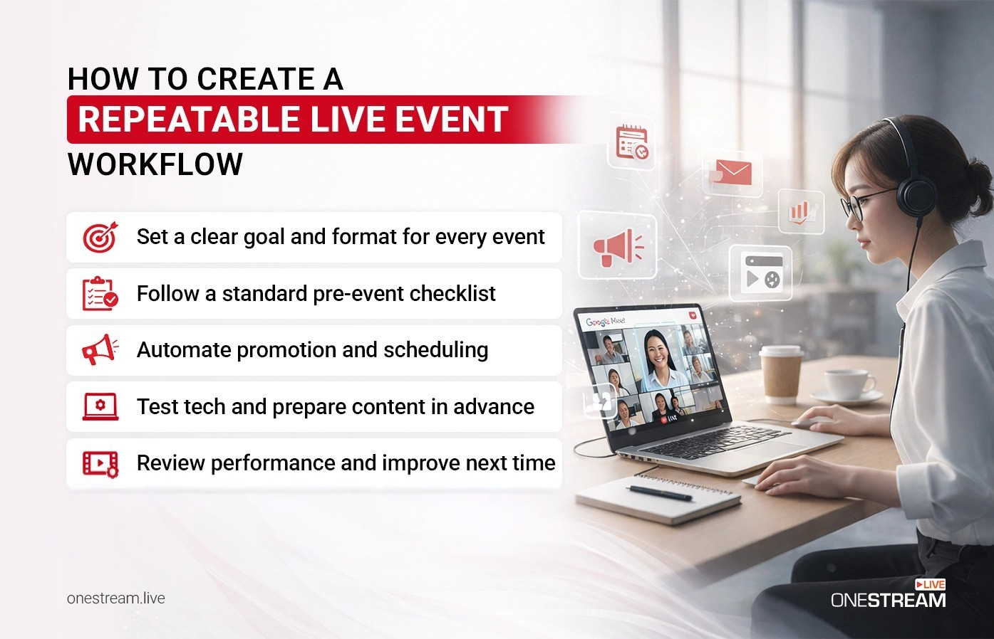 Most teams struggle to host live events consistently because each event feels like a one-off effort. The fix is not hiring more people. It is building a workflow that runs the same way every time, regardless of who is involved.