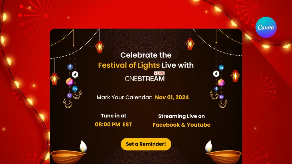 Brighten your Diwali celebrations with our vibrant and customizable social post template, perfect for sharing festive wishes and promoting your brand.