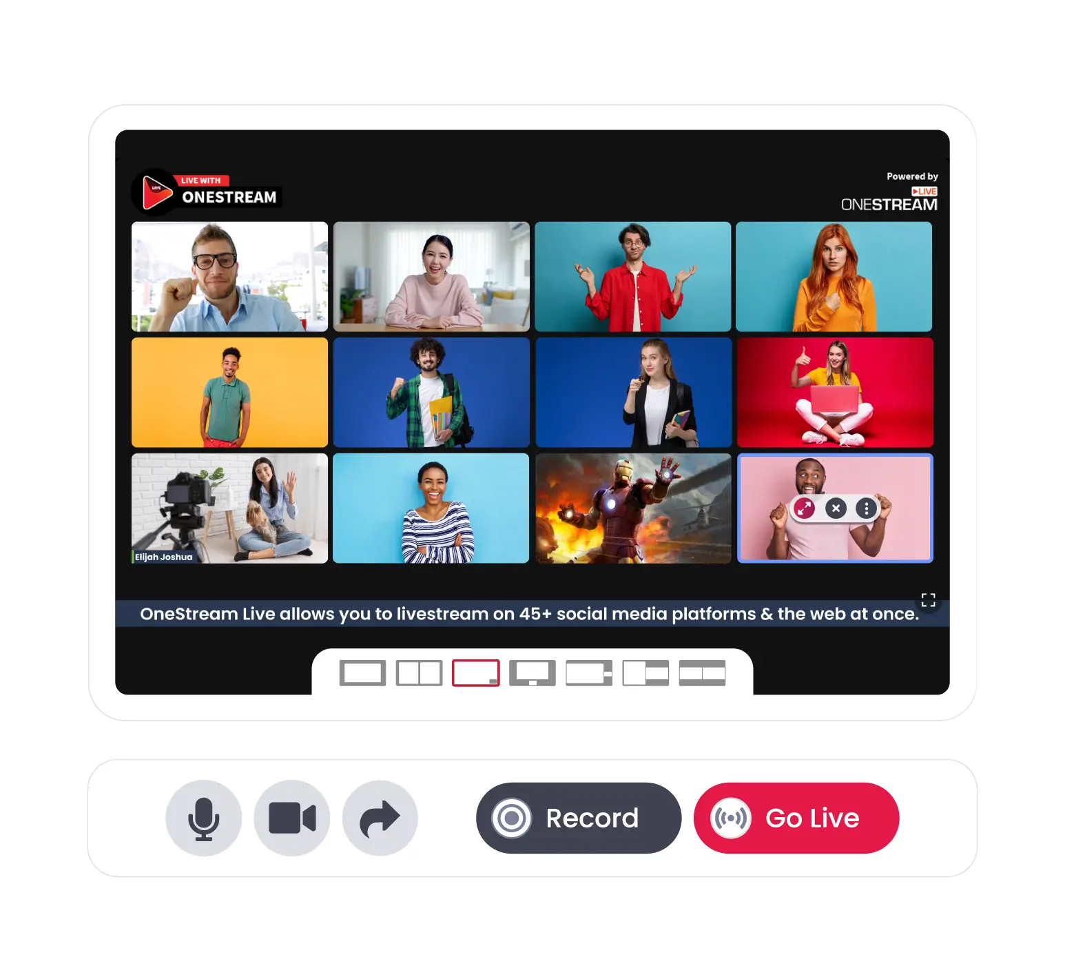 OneStream Live works with all the tools and apps you’re already familiar with, be it third-party encoders, social media platforms, or Live Studio extensions. Connect your tools to OneStream Live and multistream your content across multiple platforms seamlessly.